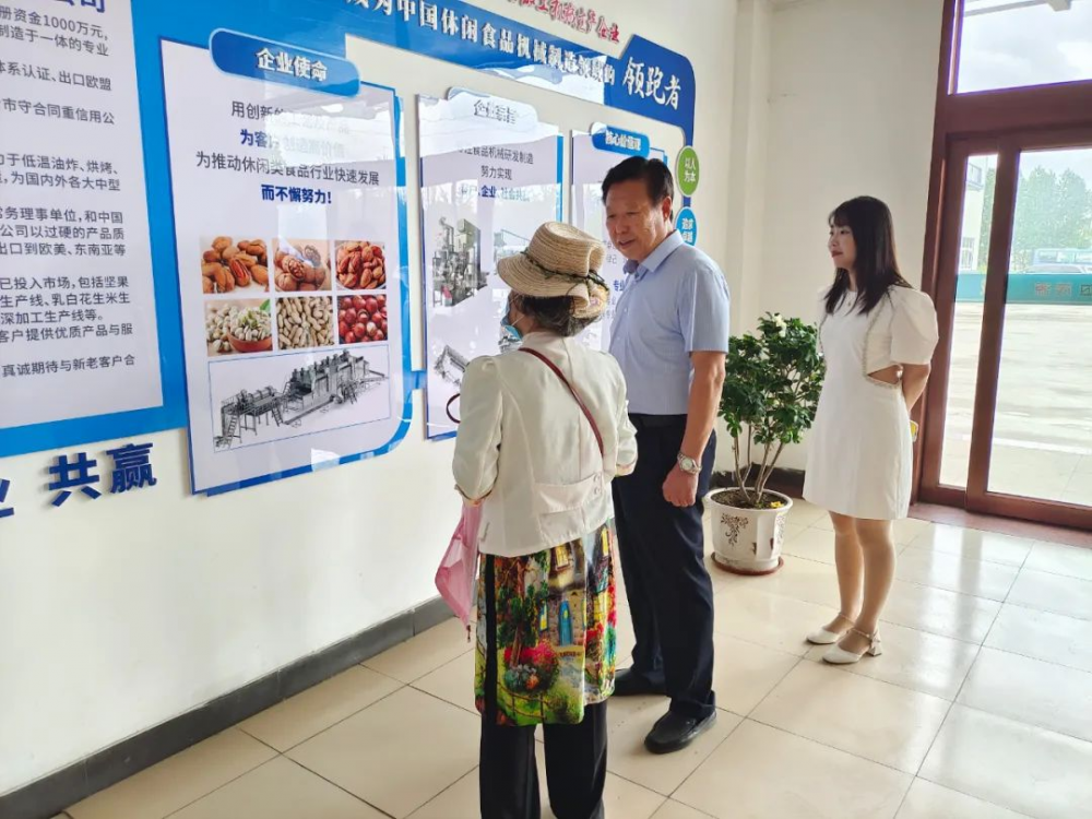 花生機(jī)械和堅(jiān)果炒貨設(shè)備近日,中國食品工業(yè)協(xié)會堅(jiān)果果干專業(yè)委員會常務(wù)副會長翁洋洋率領(lǐng)協(xié)會工作人員一行,蒞臨我司進(jìn)行考察調(diào)研,并就相關(guān)設(shè)備技術(shù)進(jìn)行指導(dǎo)工作。